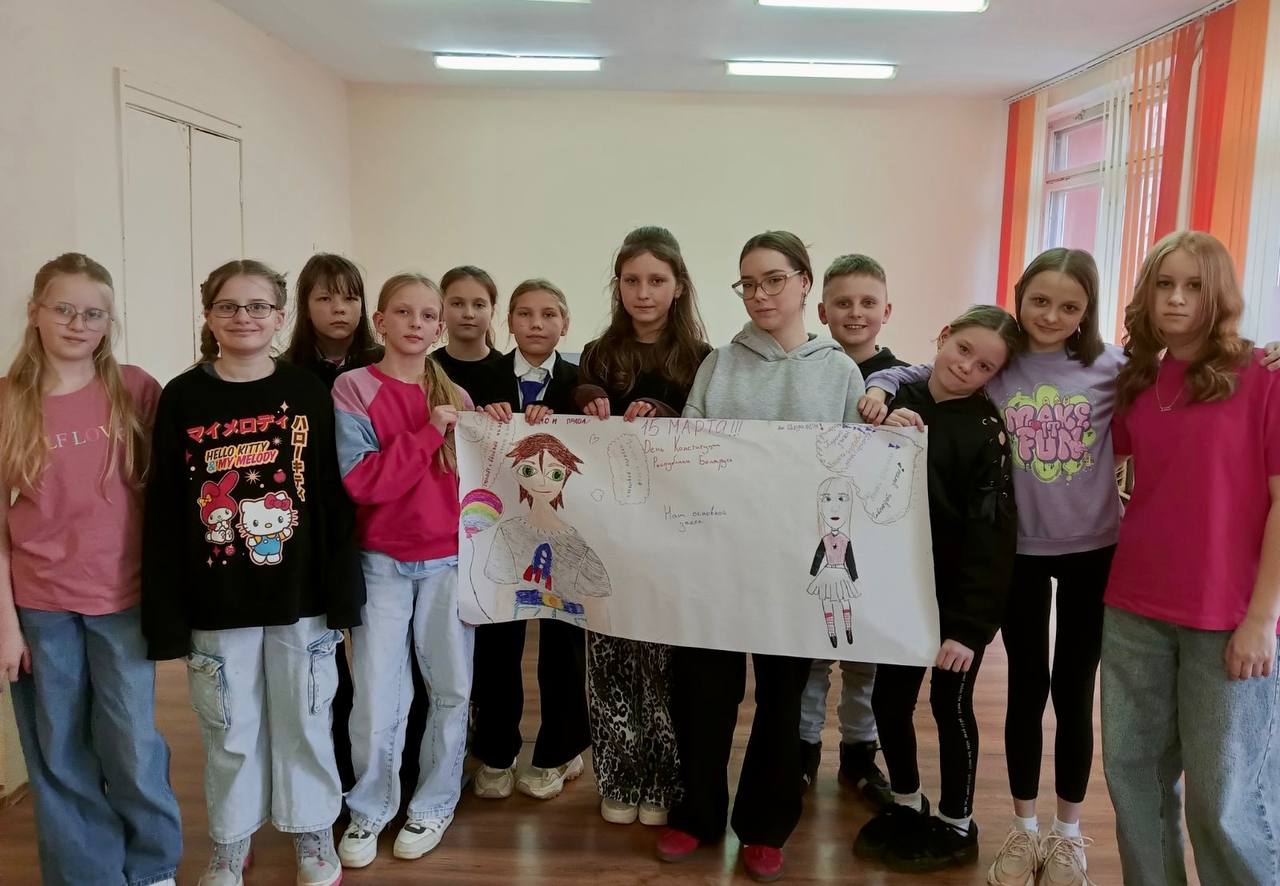 14 марта в детской комнате по месту жительства «Спутник» был проведён час информирования «15 марта – День Конституции». В ходе мероприятия ребята познакомились с историей возникновения Дня Конституции, со структурой этого документа и его основными функциями. Учащиеся отвечали на вопросыпедагога и высказывали своё мнение о том, где в повседневной жизни они реализуют свои права, обязанности и за что несут ответственность. В конце мероприятия наиболее активные участники нарисовали плакат с перечислением прав и обязанностей. В ходе диалога мальчишки и девчонки сделали вывод, что Конституция Республики Беларусь является основным законом нашего государства, который обладает высшей юридической силой, определяет государственное и общественное устройство страны, правовой статус человека, его взаимоотношения с государством и обществом.