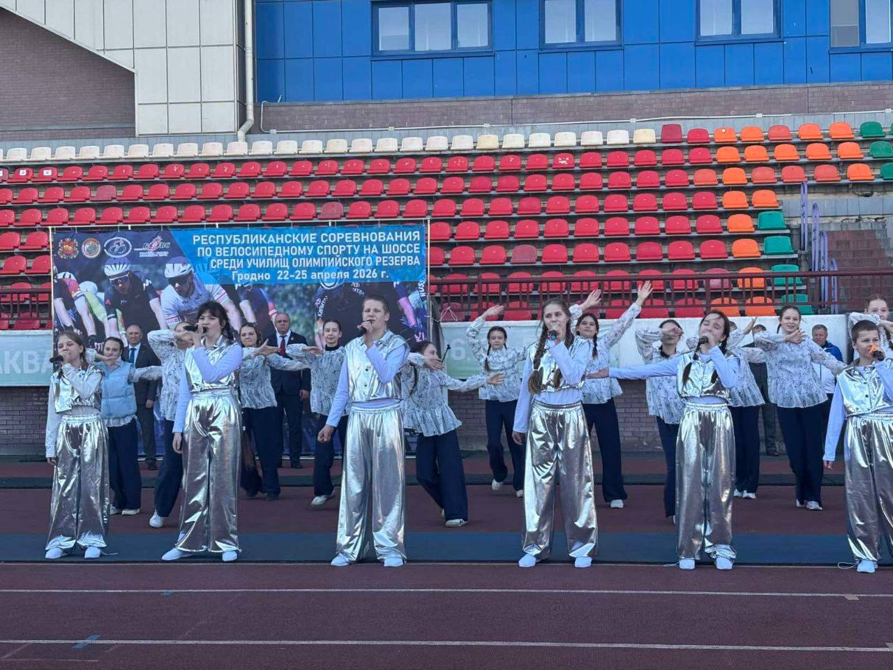 22.04.26 учащиеся вокальной студии «Кампанелла»и студии современного танца «FLASH KIDS» приняли участие в церемонии открытия республиканских спортивных соревнований по велосипедному спорту на базе ГУ «Гродненский областной комплексный центр олимпийского резерва».